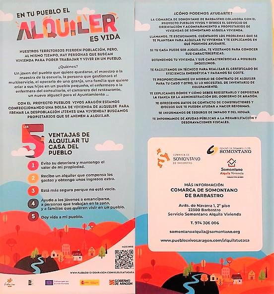 Con el proyecto "Pueblos Vivos de Aragón" se está confeccionando una Bolsa de vivienda en diversas comarcas rurales aragonesas, entre ellas el Somontano, para contribuir a frenar la despoblación. De ahí que estén buscando propietarios con viviendas que no utilizan.