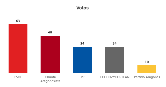 El resultado obtenido por el resto de partidos ha sido: 48 votos Chunta Aragonesista; 34 votos Partido Popular, 34 votos ECC Hoz y Costean; y, 10 votos Partido Aragonés.